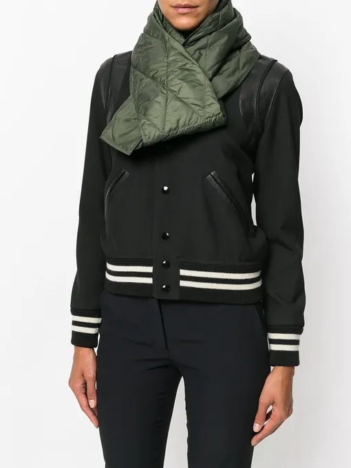 Стеганый шарф на пуху цвета хаки, Kenzo, примерно 5033 руб. (с учетом скидки — на сайте Farfetch)