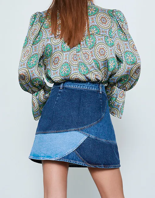 Пэчворк – излюбленный прием последней пятилетки. Если у тебя до сих пор нет вещи в таком исполнении, самое время исправить это с помощью подходящей мини-юбки. Носить ее можно с худи карамельного оттенка и белыми кроссовками или же с топом с воланами и ботильонами на завязках.
