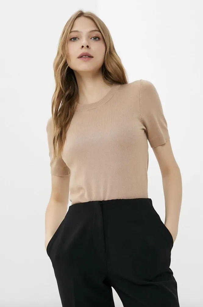 И в этом кроется основная фишка трюка (имени Эльзы Хоск): средняя и низкая посадка могут визуально вытянуть туловище и сесть на бедрах так, что животик не будет сильно заметен. И это настоящий разрыв шаблона, ведь многие считают, что низкая посадка еще больше подчеркивает нижнюю часть живота — но это происходит только при неправильно выбранной модели брюк. Или, в данном случае, юбки.