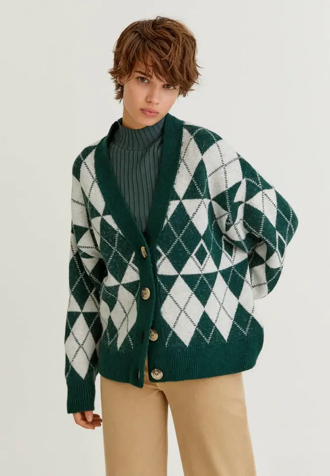 Фактурный, с воротничком, в клетку: какие кардиганы модно носить этой зимой