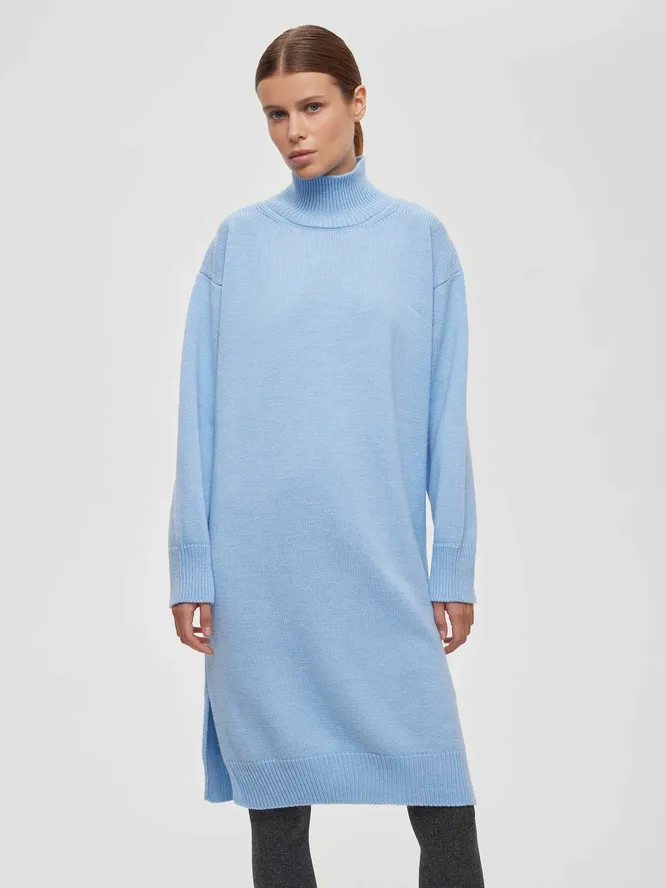 При поиске платья-свитера прежде всего нужно выбрать ту модель, в составе которой есть вискоза. Так вещь не будет быстро растягиваться и покрываться катышками.