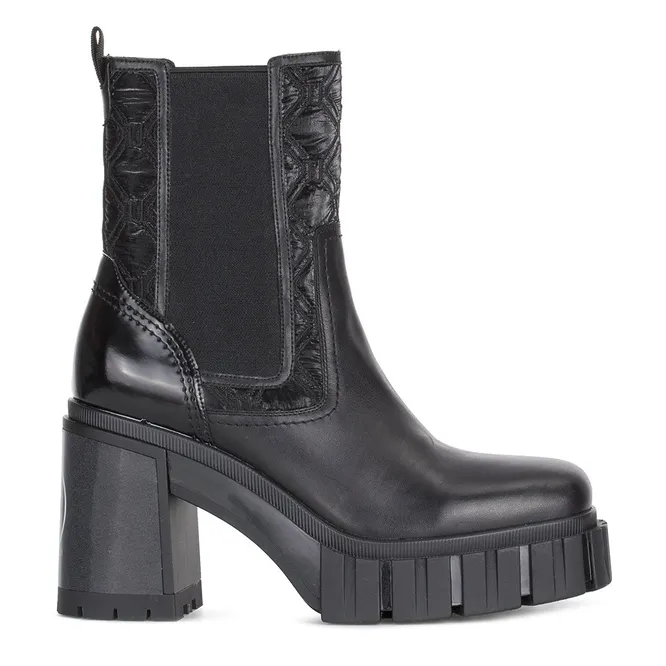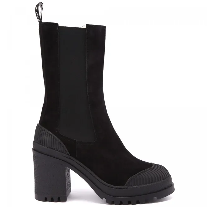 Немного повышаем ставки и примеряем модели на невысоком каблуке. Они хороши тем, что приподнимают тебя над землей, а значит, автоматически спасают от оставшихся луж. Плюс — добавляют несколько сантиметров роста. «Дружат» челси на небольшом каблуке почти с любой одеждой, но они, в отличие от «плоскоходных» ботинок, идеально вписываются в гранжевые образы. Утилитарные массивные карманы на юбке, брутальная косуха — это про них!