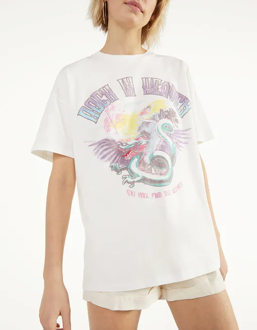 Если ты такая же бунтарка, как панки из 70-х, то эта футболка для тебя. Заправляй такую в модные в этом сезоне бермуды и джинсы с зашипами. Не забудь прикупить к образу милитари-ботинки – Сид Вишес обзавидуется.