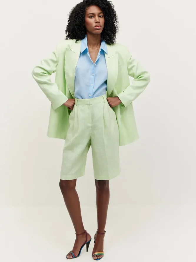 Нужно ли повторять, что костюмные шорты созданы для офисных фэшэниста? С босоножками и оверсайз-пиджаком они проходят наше собеседование с идеальными рекомендациями и сразу попадают в топовые позиции гардероба.