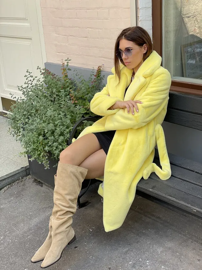 Мы уже ощущаем нехватку солнца — скорее бы наступила весна, а световой день перестал заканчиваться в 4 часа вечера. Чтобы немного поднять настрой себе и окружающим, прописываем всем модницам мягкую экошубу насыщенного жёлтого оттенка. Она похожа на дофаминовый плед: завернулась в такой — и все уже не кажется таким унылым. По крайней мере, попробовать точно стоит.