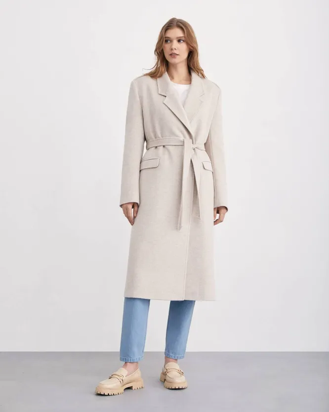 А еще его можно украсить широким ремнем, который ты затем можешь надеть поверх оверсайз-жакета, если как раз торопишься на работу. Когда времени на сборы и тщательную подготовку look'а нет, пальто в оттенке тополевого молока будет идеальным решением. Как ты догадалась, эта модель — наш фаворит. И, что самое приятное, из трендов она не выходит!