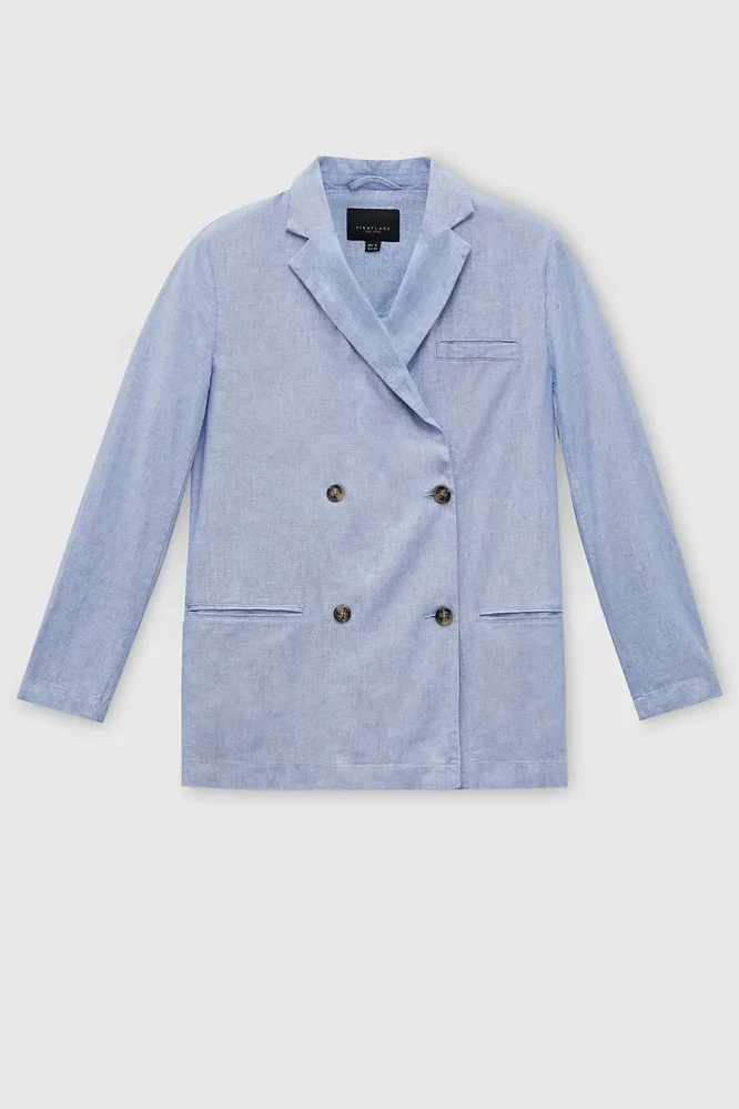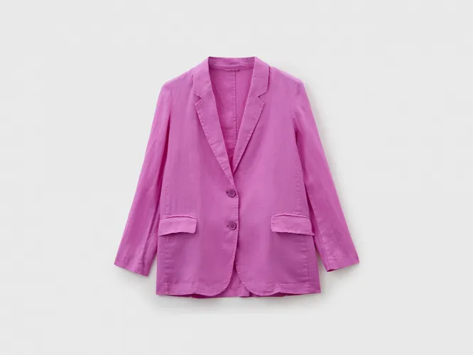 Самая классная идея для жаркого дня — приятный к телу льняной пиджак, который можно накинуть на легкое платье, боди или укороченный топ. Да, лен может колоться, но если в состав будет добавлен небольшой процент других (даже синтетических) материалов, то неприятных ощущений не будет.