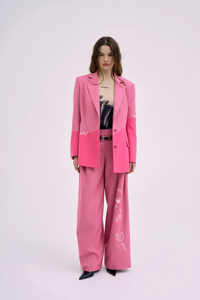 Принты — классный способ выделиться и разнообразить свои базовые аутфиты. И мы, честно говоря, в последнее время «подсели» на авторские, оригинальные рисунки. Такого пиджака точно ни у кого другого не будет, а если и будет, то шанс встретить незнакомку в таком же жакете крайне мал. Но если ты сторонница классики, то присмотрись к вертикальной полоске: строящий эффект нам не помешает.