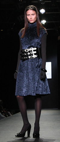 И снова владычество черного цвета, завышенная талия, юбки-сигареты и широкие пояса. Отдельного внимания в коллекции Dal Bat заслуживают платья из атласа и объемные эпатажные мини-юбки необычной фактуры. Смотрим второй показ испанского дня на RFW.