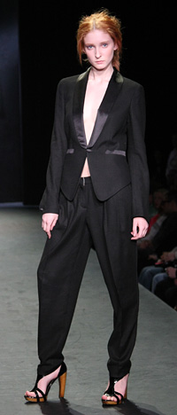 Хорошо известный, прежде всего, своей парфюмерной продукцией, испанский модельный дом представил в рамках Russian Fashion Week смешанную коллекцию, женскую часть которой можно смело ставить в толковый словарь как иллюстрацию слова «резкость», а мужскую – «разнообразие». Вооружившись сверкающей фактурой ткани, Basi решил нарочито резко обозначить нижние части своих коротких женских платьев, буквально обрывая их. Что же, надо признать, что в сочетании с открытыми туфлями на высоком каблуке такой ход смотрится исключительно выигрышно. Мужских моделей pret-a-porter на RFW было значительно больше, чем женских. Basi прошелся практически по всему набору материалов от шерсти до твида. Хотя общее дыхание коллекции было весьма консервативным, на фоне его работ прошлых годов, ее разнообразие должно прийтись ко двору во всех 500 бутиках, где представлена одежда Basi.