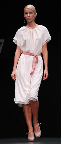 Силуэты нарядов так же просты и выразительны, как и их оттенки: платья-рубашки в духе 80-х годов из шифона, нарочито чуть великоватые, и в том же духе летние пальто из белоснежного шелка с подчеркнутым акцентом на плечи; лиловые струящиеся платья трапециевидного силуэта с маленьким жакетом-болеро с короткими рукавами, сплошь расшитым пайетками цвета стали, и черные атласные маленькие коктейльные платья на очень тонких бретелях. Для более экстравагантных модниц есть вариант такого наряда, расшитый серебристыми пайетками широкой полосой по подолу.