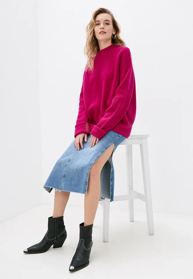 Хочешь добавить ярких красок в повседневный гардероб? Тогда примерь ярко-розовой негабаритный джемпер с джинсовой юбкой или с вельветовыми брюками.