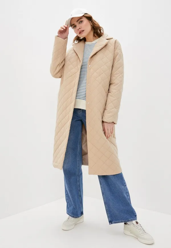 Любительницы минималистичных образов смогут легко внедрить бежевое длинное пальто в свой гардероб. Благодаря мягкому поясу и стеганой текстуре вещь без сомнения будет актуальна весной.