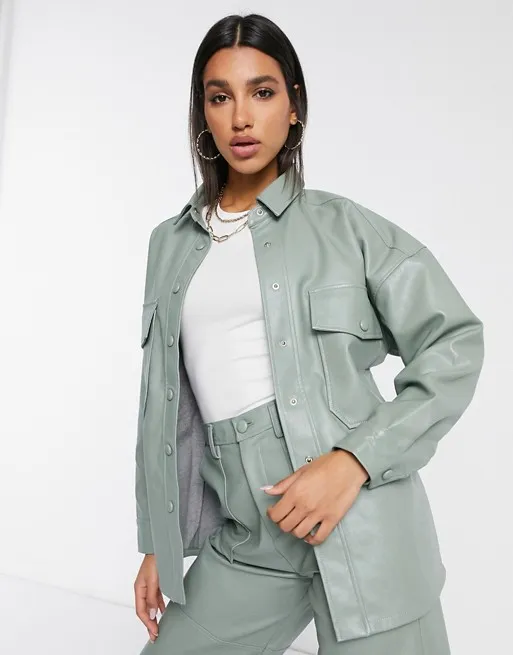 Легкая кожаная куртка-рубашка оверсайз разнообразит твой привычный стиль. Дополнительное преимущество вещи — универсальная, но нескучная пастельная расцветка.