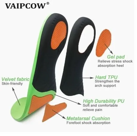 Как и многие виды ортопедических стелек других производителей, стельки от VAIPCOW сделаны из этиленвинилацетата, который не скользит, позволяет ноге дышать, поглощает влагу и устраняет неприятные запахи.