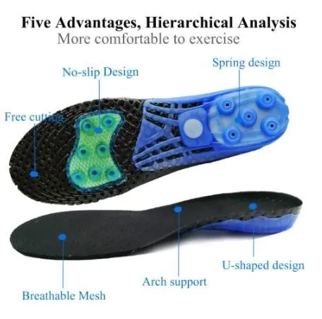 Лучшие ортопедические стельки от бренда YuanXiangZhu с 4D эффектом, которым обозначены четыре точки поддержки стопы в виде специальных выпуклостей с эффектом памяти: в районе пяточной кости, на подъеме, в районе ладьевидной кости и пальцев.