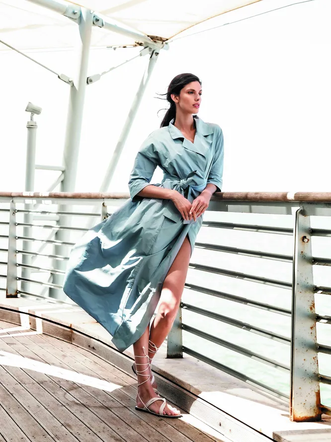 А между тем, само по себе платье-халат — вполне себе королевский выбор! И говорим мы это без доли иронии. Это одна из излюбленных моделей Кейт Миддлтон и королевы Летиции, такие же образы примеряла Меган Маркл. Плащи такого же фасона особенно любимы королевскими особами — кстати, они частенько появляются в коллекциях итальянского Дома DIEGO M, так что, когда будешь искать тренч на прохладную погоду, обязательно загляни туда.