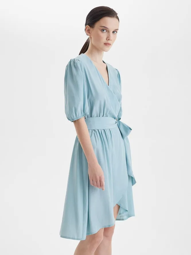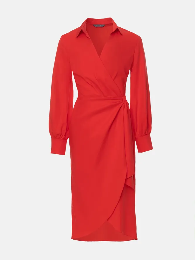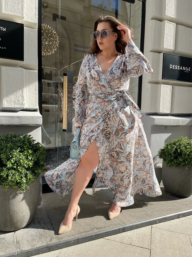 Чем хороши миди и макси-платья на запахе — так это женственной летящей юбкой и возможностью подчеркнуть талию поясом в той пропорции, которая тебе нужна. Строгие фасоны такой свободы действий не дают: футляры нужно подбирать точно по фигуре, юбки-карандаши без примерки не купить. А вот расслабленные халаты — другое дело!