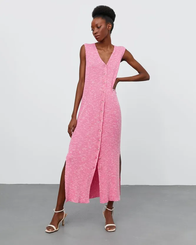 Нас вдохновил недавний выход Летиции на официальном приеме в Мадриде. Лаконичные слингбэки Carolina Herrera и черно-белый принт с вертикальными полосами — со всех сторон правильное решение. Паттерн вытягивает фигуру, шпильки в оттенке темной фуксии добавляют яркий акцент, а платье подчеркивает тонкую талию. Простой «рецепт» сногсшибательного образа: акцентные лодочки и платье-халат — его выбором мы и займемся. Чтобы шопинг получился более разнообразным, добавили модели с летящими юбками, как у испанской королевы, и более строгие модели — на все случаи.