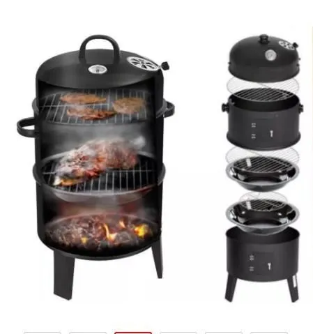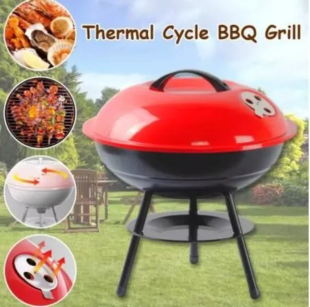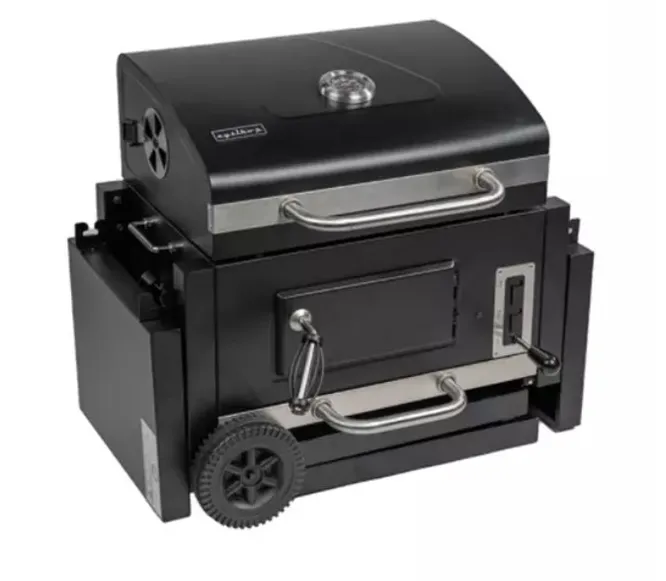 Классический гриль-барбекю, как пользоваться которым знают все, кто хотя бы раз смотрел американские фильмы, изображающие вечеринки на заднем дворе. Сделанный из прочной стали, в собранном виде гриль напоминает чемоданчик с колесиками. Сверху в крышке расположен термометр, а сбоку — вентиляционное отверстие. Все детали на шарнирах, поэтому процесс сборки гриля не занимает много времени. Ничего не придется прикручивать.
