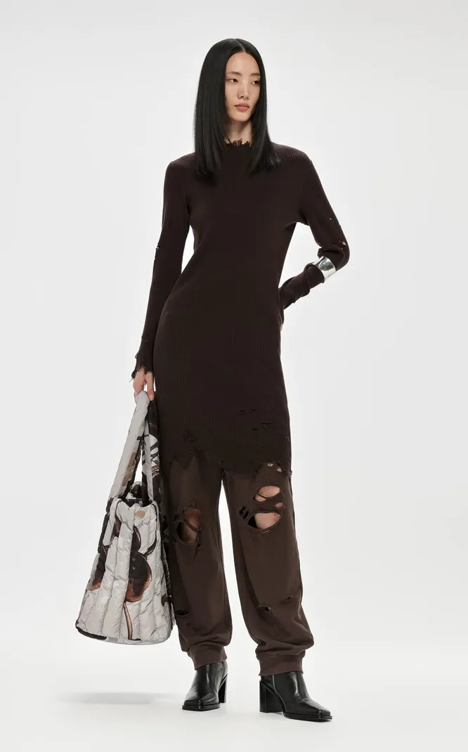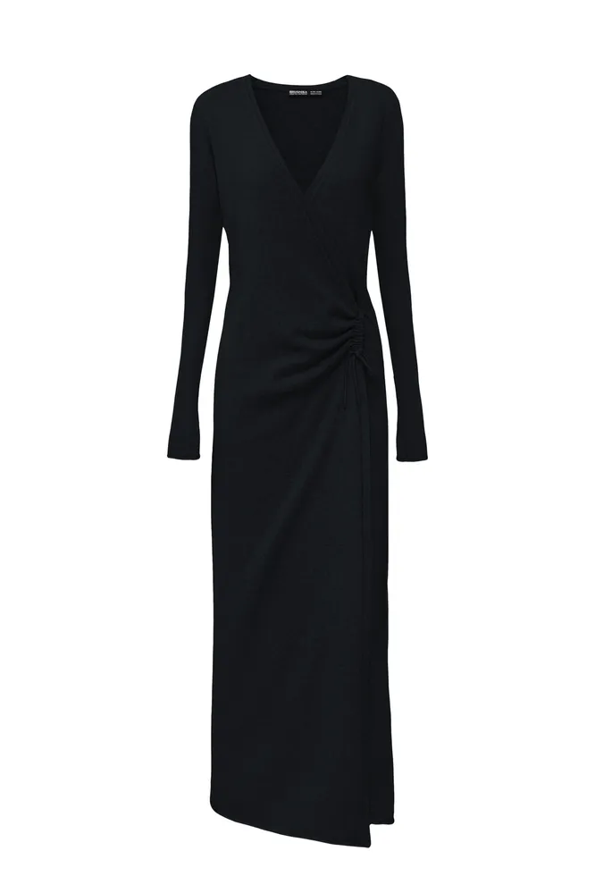 Платья из шерсти в длине миди тоже хороши, и чаще всего девушки выбирают именно их – практично. Носить их можно с пальто такой же длины, с куртками ниже бедра и макси-пуховиками. Особенно благородно выглядят образы в классическом черном и других темных оттенках: винном, темно-синем, коричневом. И да, это в целом хорошая идея для ненастной погоды – подол платья ты не испачкаешь.
