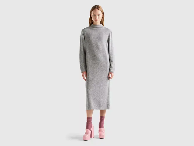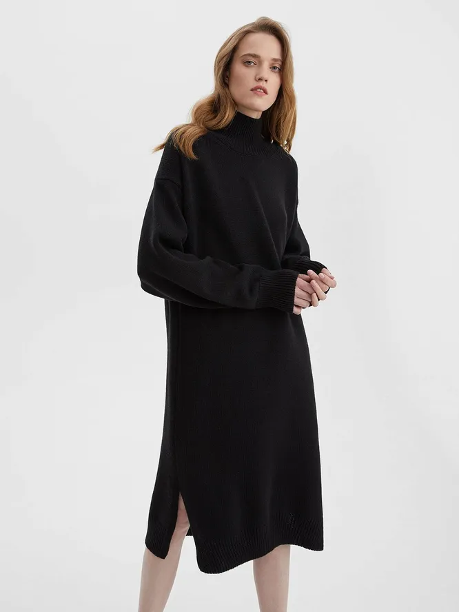 Самые практичные шерстяные платья — удлиненные свитеры с высоким воротом. Очень удобно для повседневных аутфитов, когда нет настроения заморачиваться со стайлингом – но если добавить аксессуары ( широкий пояс, например), то можно надеть платье-свитер и на вечернее мероприятие. Огромным преимуществом этих моделей является разнообразие длин и цветов. Именно «свитеры» подойдут на серьезный «минус», поскольку воротник закрывает самое уязвимое место — шею.