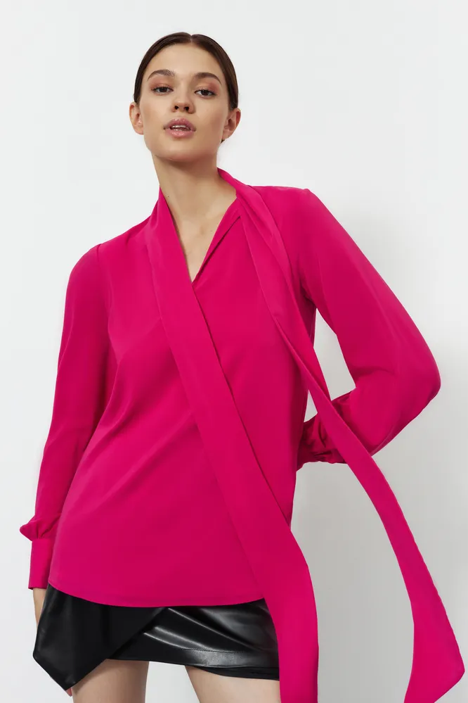 Один из мощных трендов прошлого и грядущего сезонов — асимметричный крой. Блузы на запах, небанальные воротники, вырезы, драпировки — выбирай любой элемент, все пригодится! Нам по душе атласные блузы со скошенным воротом — минимализм в его лучшем проявлении.