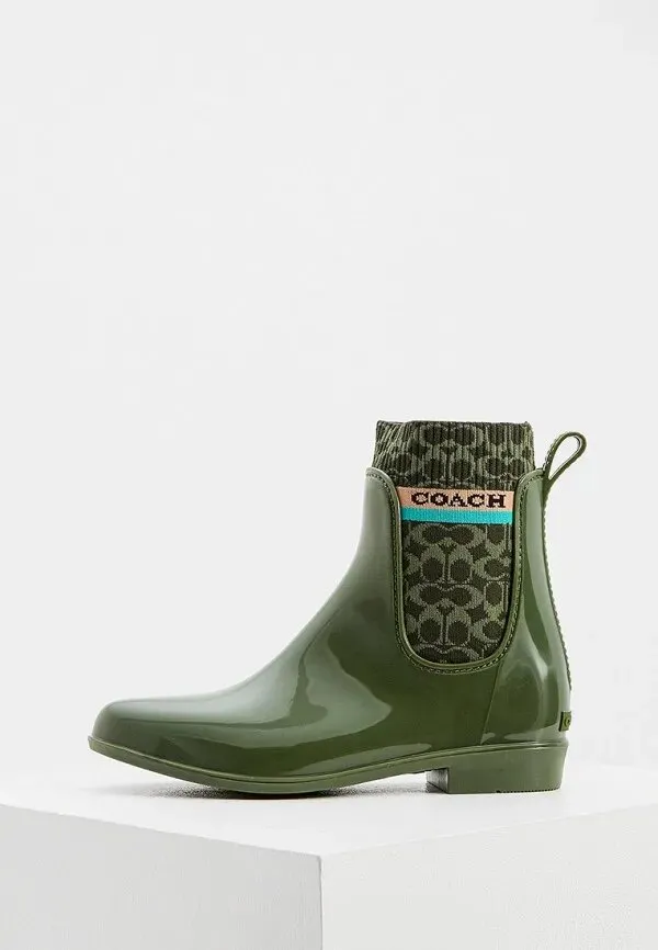 Думаешь, что сапоги из резины — это уродливая обувь, которая только портит образ. Ничего подобного! Современные резиновые демисезонные модели не отличить от трендовой обуви из кожи или замши. Брендовые зеленые сапоги-казаки – отличное тому подтверждение.