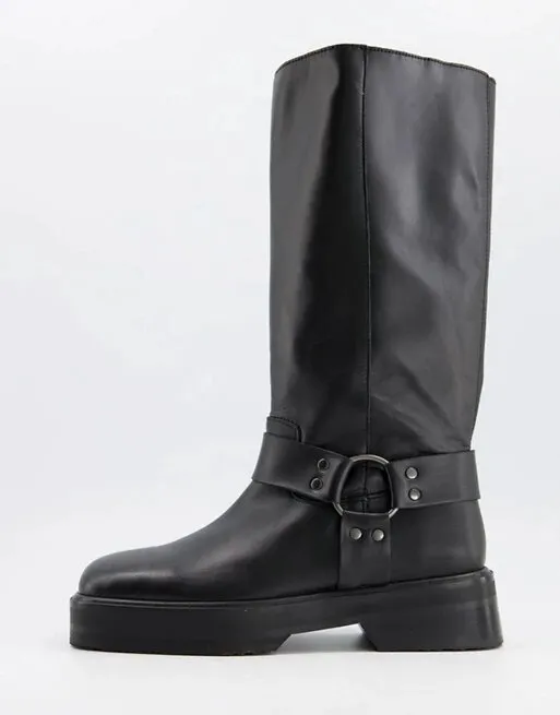 Высокие демисезонные кожаные сапоги, ASOS DESIGN Chilli