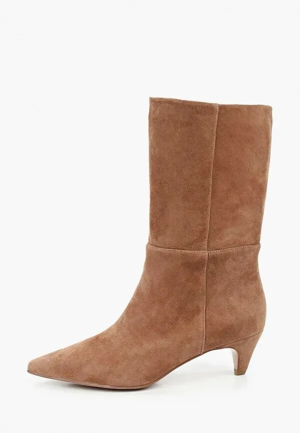 Ищешь минималистичные сапоги трендового силуэта? Обрати внимание на бежевые демисезонные сапоги на низком каблуке kitten heel или рюмочке. Носи обувь с прямыми джинсами и шерстяной водолазкой.