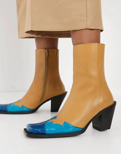 Кожаные сапоги в стиле вестерн с контрастным носком, E8 by Miista Elodie