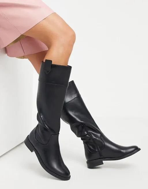 Классические черные жокейские сапоги из искусственной кожи одинаково хорошо смотрятся и с бермудами, и короткими юбками. Проверь сама!