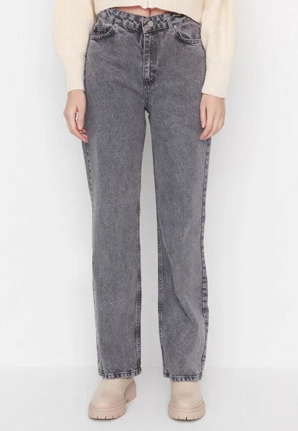 Оставим светло-голубые модели на весну и лето, в холодный период актуальнее смотрятся варианты более глубоких и приглушенных оттенков. Графитовые джинсы добавляют самым базовым образам небольшой «твист» — такой деним смотрится дороже, чем обычный синий.