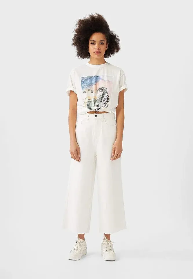 Белые джинсы, может быть, и уступают классическим синим моделям в практичности, но вот в универсальности им точно нет равных. Белый цвет послужит отличным фоном для твоих творческих фантазий — реализуй самые смелые идеи и сочетания. Весна — отличное время для экспериментов.