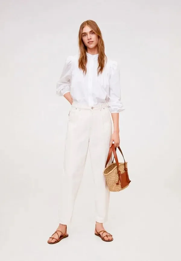 В теплую погоду сочетай такую модель с рубашками и блузками, футболками и топами. Цвет не имеет значения. Можешь подбирать верх в тон или же играть на контрасте. Обязательно примерь белые джинсы с ярким поло, которое будет особенно популярно весной — классный вариант для прогулки в парке, похода по магазинам или встречи с друзьями.