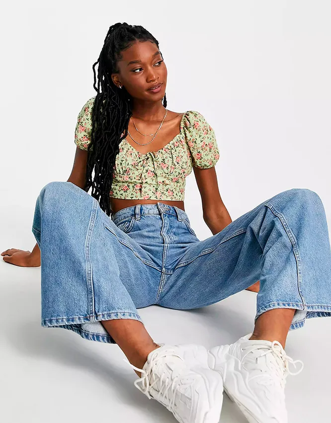 Топы в цветочек — классика летнего гардероба. Романтичным особам советуем обратить внимание на модели с объемными декоративными элементами. Пышные рукава, сборки или рюши подчеркнут романтичное настроение образа и сделают тебя еще более нежной и хрупкой.