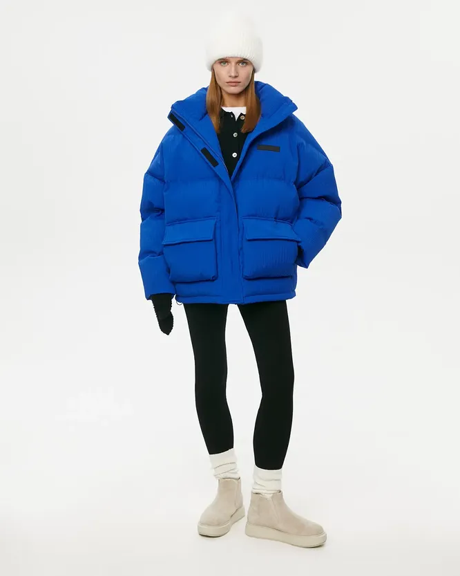 Двигаемся дальше – прямо к самому горячему тренду зимы 2023/2024, то есть пуховикам-одеялам. Правила простые: оверсайз, свободный крой, удлиненные рукава, крупная стежка – вот и весь рецепт актуальных и неприлично удобных пуховиков.