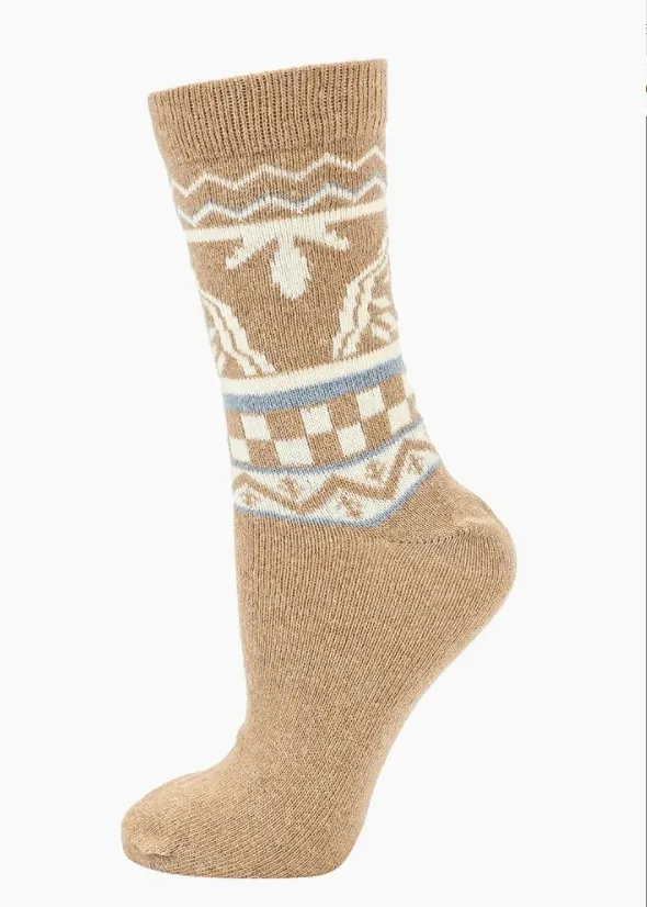 Еще одни классные женские шерстяные носки – пара с узором фэр-айл, которая станет идеальным дополнением к новогоднему свитеру или зимнему джемперу с аналогичным рисунком. Кстати, если ты еще в процессе покупок подарков к Новому году для друзей и близких, советуем обратить внимание на эти носки – такой милый и теплый презент точно порадует получателя.