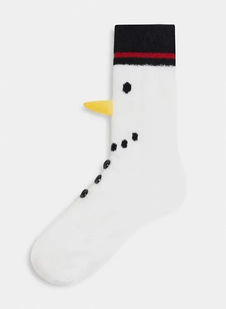 Близится главный праздник года. Если ты уже подготовила для себя и близких пару нелепых новогодних свитеров, то предлагаем дополнить их забавными теплыми носками. Наш первый фаворит – толстые шерстяные носки в виде снеговиков, декорированные пуговицами, вышивкой и объемными носами-морковками. В них можно провести все зимние каникулы, устроить новогоднюю фотосессию или подарить носки кому-то из родных или друзей.