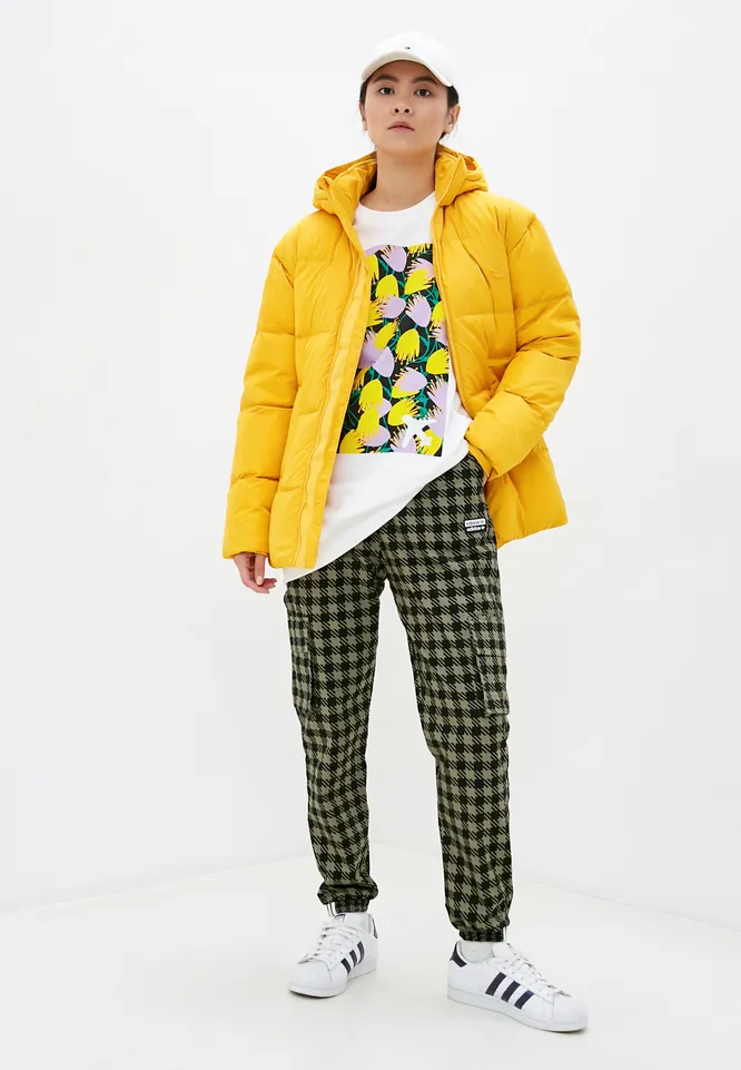 Не бойся носить зимой яркие вещи. Желтый пуховик точно выделит тебя из толпы и поможет создать остромодный образ даже в морозы.