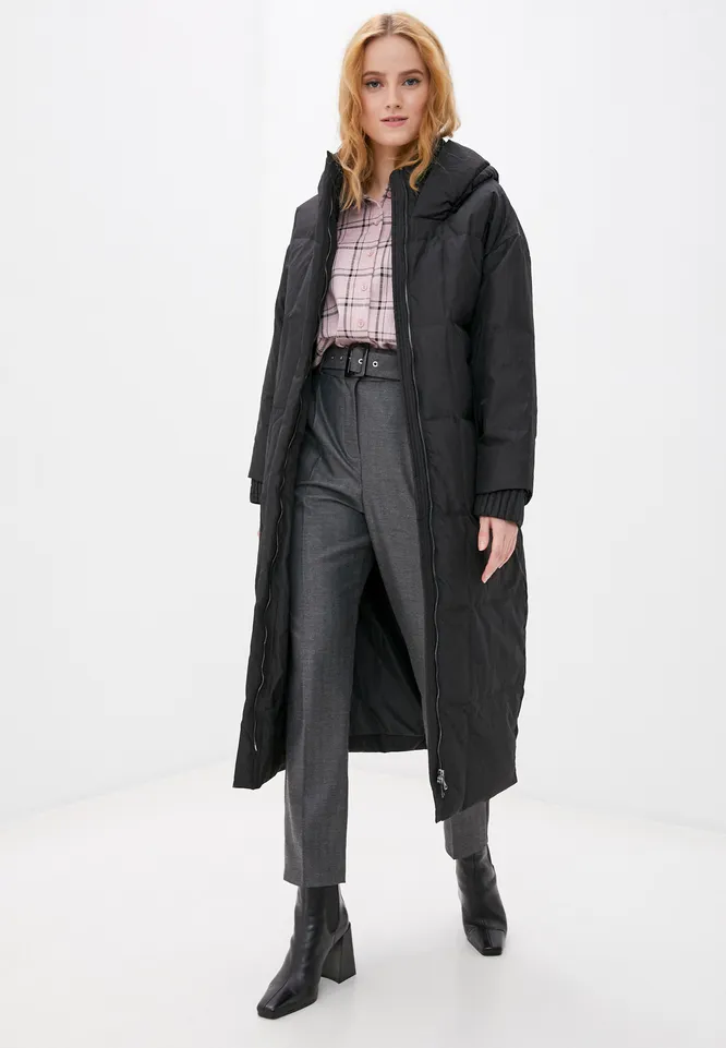 Максимально нейтральный и универсальный пуховик прямого кроя. Можно носить его поверх платьев, брючных костюмов, трикотажных джоггеров и худи.