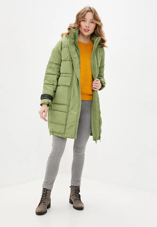 Шалфейный пуховик не перегрузит образ и станет универсальной верхней одеждой, которая легко комбинируется с разными аксессуарами и обувью.