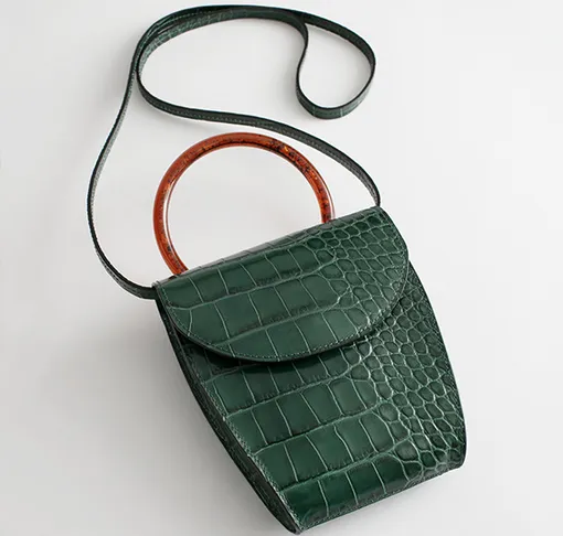 Пожалуй, мы не тебя не удивим, если скажем, что цветные сумки снова в моде. Только вот цвет этот нужно выбирать с осторожностью: никакого неона или хаки; в приоритете все оттенки зеленого (про оливковый и его сородичей пока забудь), фиолетовый, розовый и желтый. Эта модель сумки с эпоксидной ручкой как раз подходит под наше описание. Кроме того, она выполнена «под крокодила», хотя, понятно, ни один крокодил при ее создании не пострадал –экологично, актуально, стильно.