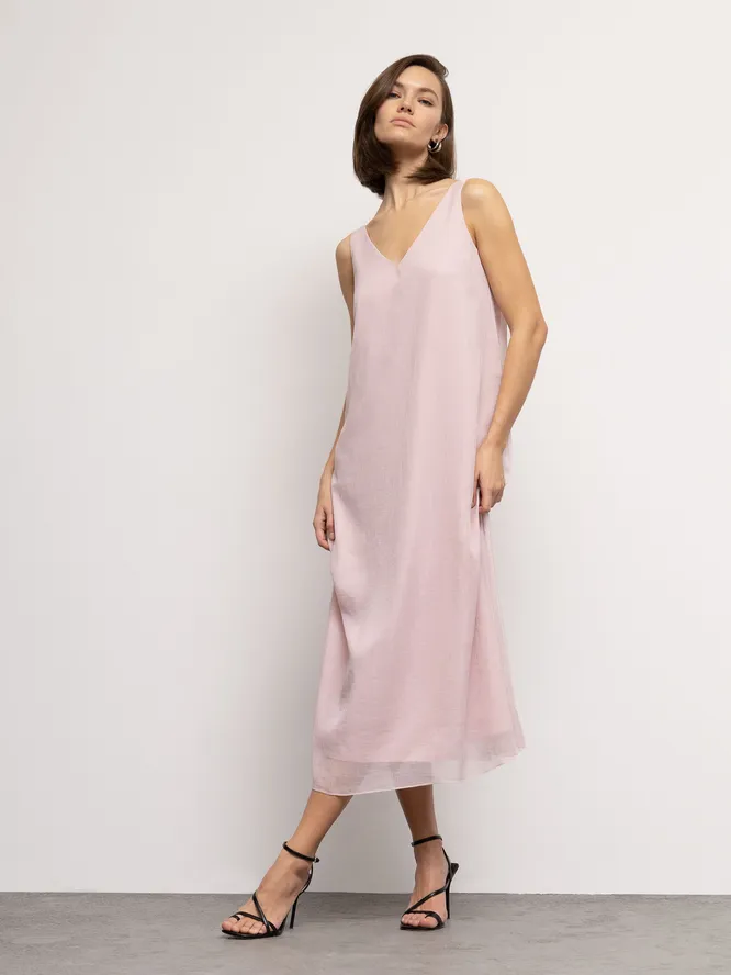 Если ты собираешься провести праздники дома, но все-таки ждешь гостей, то советуем примерить свободное платье из легких материалов, в которых ты не будешь бояться вдохнуть, сидеть и танцевать. Комбинации, платья с драпировкой на талии, сарафаны, трапеции — ваше время!