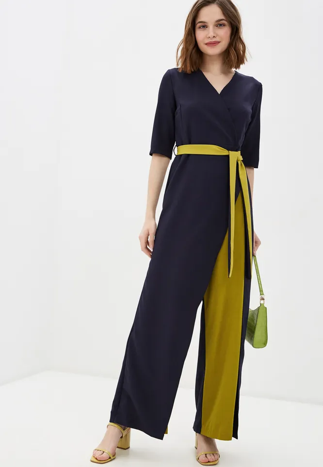 Комбинезон расцветки колор-блок — идеальный вариант для тех, кто обожает винтажные образы. Женский костюм роскошно смотрится и с ботинками, и с аккуратными лодочками. К сожалению, сейчас доступны только небольшие размеры.