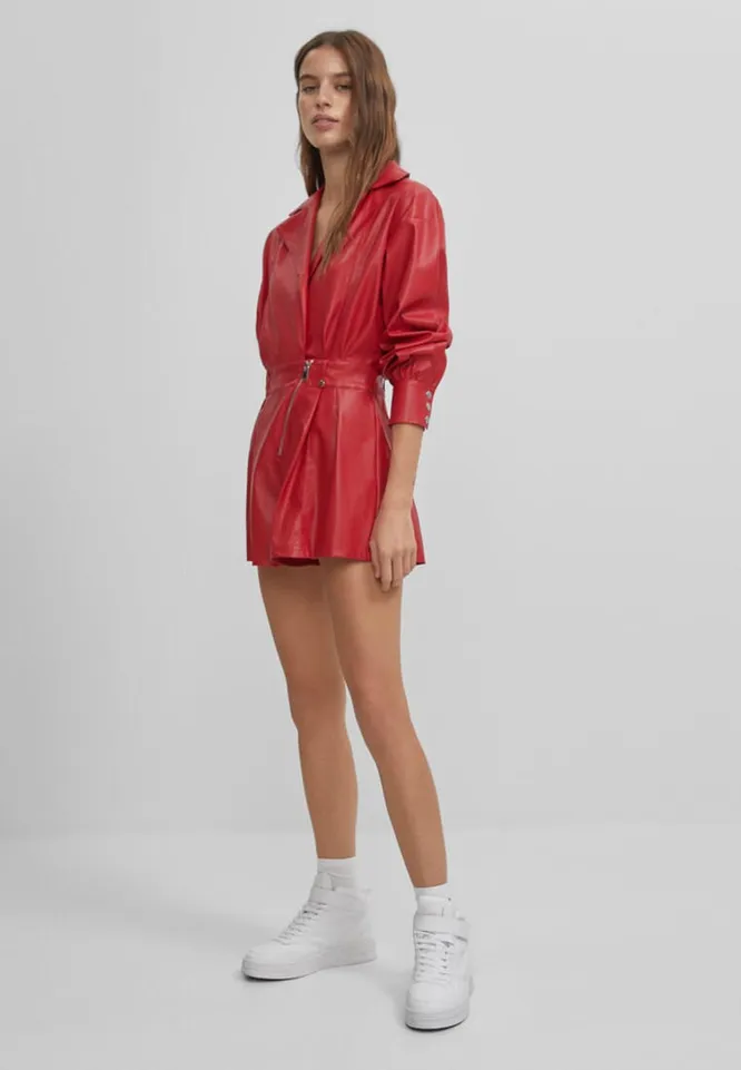 Кожаные комбинезоны в стиле 90-х актуальны как никогда. Если ты не любишь наряжаться в нежные платья, обрати внимание на трендовый красный укороченный комбинезон. Носи его с лоферами или кроссовками.