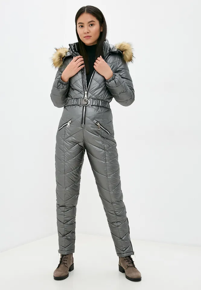 Зима обычно не спешит уходить, поэтому обязательно добавь в свою теплую капсулу стеганый комбинезон с меховым капюшоном.