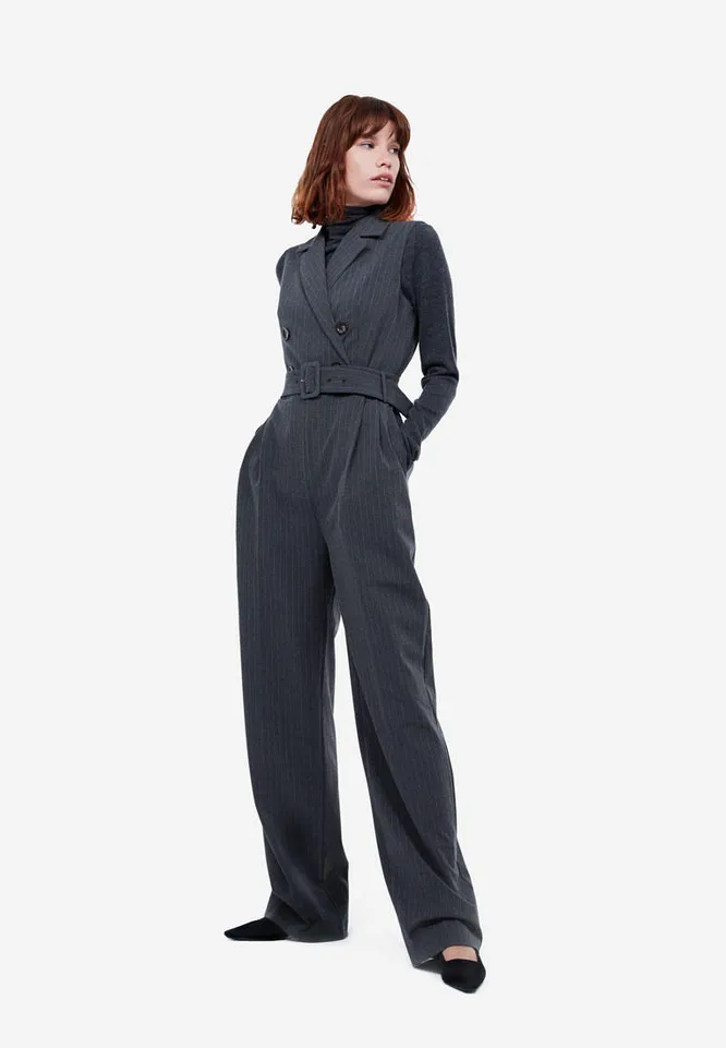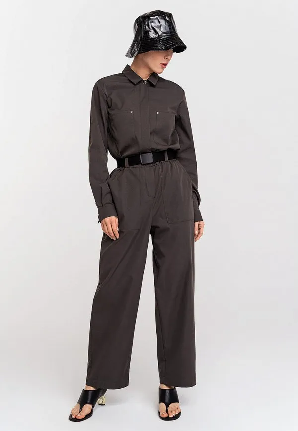 Минималистичный темно-серый комбинезон заменит тебе скучные комплекты из джинсов и свитеров. В трендовом костюме ты можешь отправиться на работу или затусить с подругами после рабочего дня.