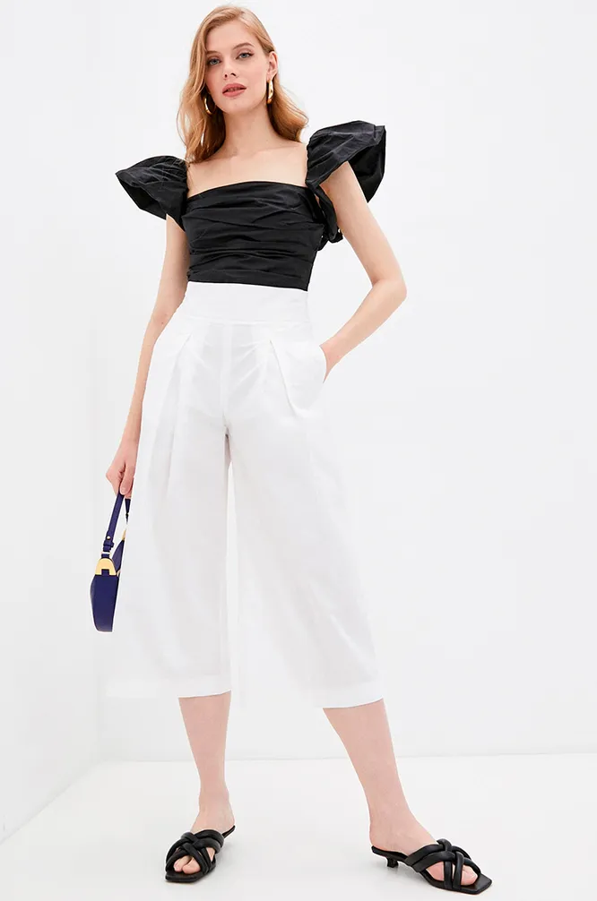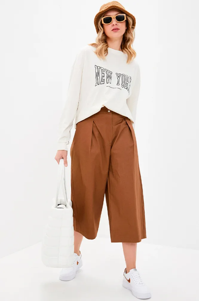 Брюки-кюлоты — отличный вариант для лета. Свободный крой и легкие материалы обеспечивают комфорт в жару, высокая посадка акцентирует талию и делает фигуру выразительной. В нашей подборке 7 интересных моделей, которые станут идеальной основой для твоего образа в этом сезоне.