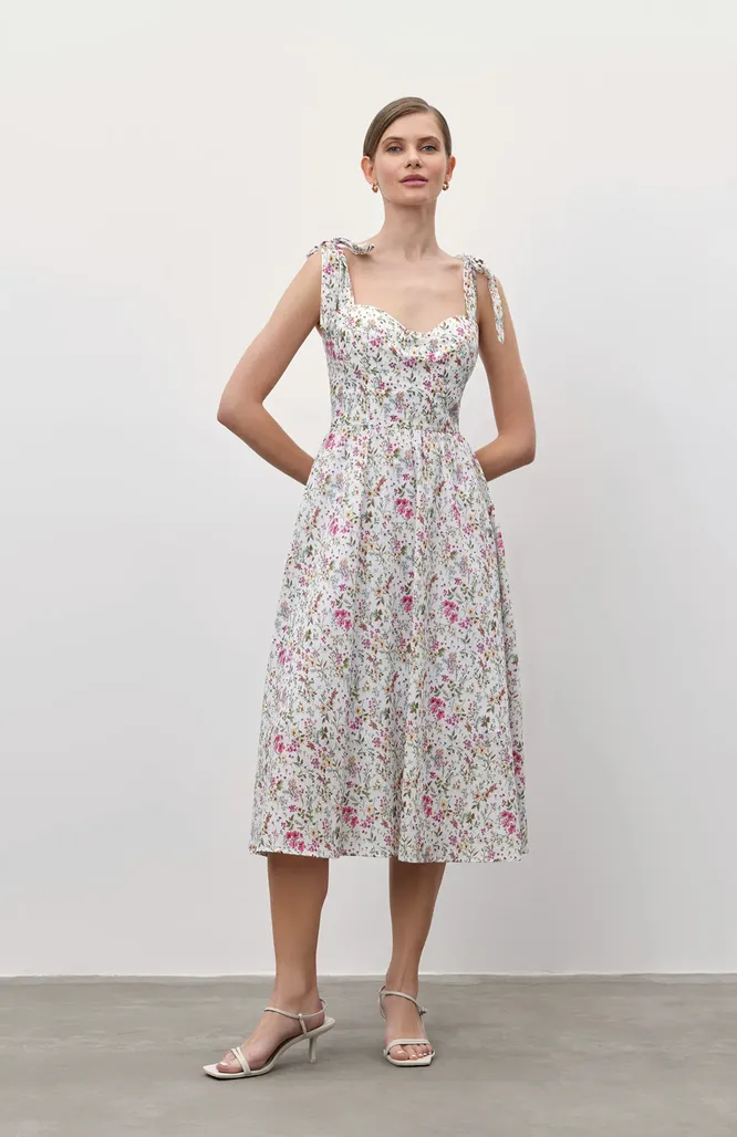 Плюс, к нему подойдут как классические лодочки, так и босоножки, поэтому насчет обуви не переживай. Кеды в стиле ретро тоже можно носить с таким женственным платьем — вариантов у нас с тобой масса.